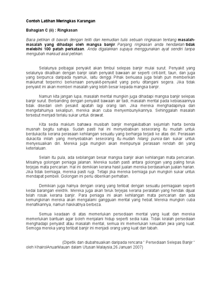20 Disember 2014 Masa laporan disediakan. Anda boleh menggunakan contoh karangan di bawah sebagai panduan untuk membantu dalam. Oleh kerana hujan lebat yang kerap berlaku pada masa itu keadaan ini telah menyebabkan banjir di kawasan tersebut.